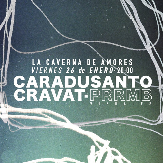 Nos preparamos para una experiencia sonora única con el esperado concierto CaraduSanto y Cravat (socios residentes de Caverna) ofreciendo su particular perspectiva de la música electrónica ambiental. Caradusanto es conocido por sus paisajes sonoros envolventes y la ecléctica de la banda Cravat por ser un engendro luminoso cargado de pop y shoegaze. Acompañados por PRRMB y sus cautivadoras imágenes en movimiento.