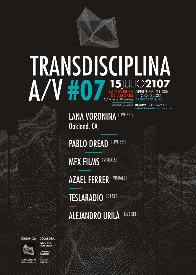 Os presentamos la séptima edición de Transdisciplina A/V, será el próximo Sábado 15 Julio en La Caverna de Amores.